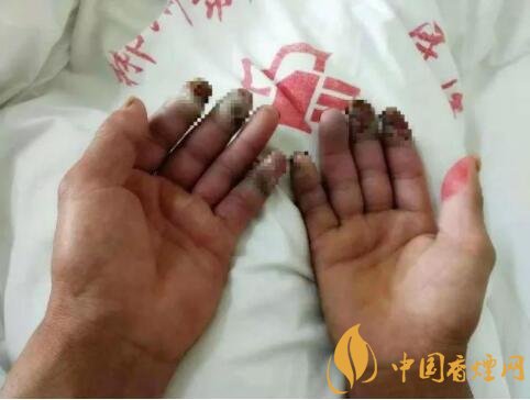今年8月,谷某雙手手指開始出現(xiàn)間歇性疼痛。起先,他還以為是痛風,沒太在意,只是在當?shù)蒯t(yī)院配了些治痛風的藥。兩個多月后,疼痛明顯加劇,晚上睡覺時特別疼,整夜整夜地疼,需要靠吃止痛藥才能入睡,慢慢手指遠端出現(xiàn)發(fā)黑,患者家人這時很重視,帶患者跑了三家醫(yī)院,確診為"血栓閉塞性脈管炎"。入院前,止痛藥已經(jīng)完全起不了作用,整夜都不能睡,痛得大汗淋漓,一雙手,要時時刻刻泡在冷水里面,拿出來時要用嘴巴吹風,時時刻刻抖動雙手,緩解疼痛,一副痛不欲生的樣子。