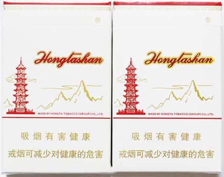 真煙選用的是白卡紙,采用凹版印刷工藝,故”經(jīng)典“二字整體筆畫(huà)較粗;商標(biāo)”紅塔山“字樣手摸上去沒(méi)有凹凸感,而且中間的”塔“字,下方口字上一橫沒(méi)有缺口。另外logo紅塔圖案左側(cè)的上下兩朵云,距離塔身較近。而假煙商標(biāo)紙除了選用的是劣質(zhì)紙張外,印刷工藝上多是采用高清掃描防印,故假煙多呈現(xiàn)以下特征:”經(jīng)典“二字筆畫(huà)較細(xì);商標(biāo)”紅塔上“字樣摸上去有凹凸感;而且”塔“字下方口字上一橫有小缺口;logo”紅塔“左側(cè)的兩朵云距離塔身較遠(yuǎn)。