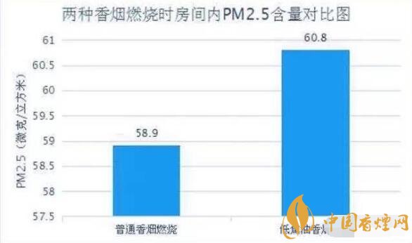實驗結果表明細支煙與粗煙危害對比,粗桿煙燃燒后,室內(nèi)PM2.5含量為58.9(微克/立方米),細桿煙燃燒后,室內(nèi)PM2.5含量為60.8(微克/立方米),均比點燃香煙之前有明顯提升。而且,細桿煙所釋放的煙草煙霧濃度,略高于粗桿香煙。也就是說,號稱“低焦油香煙”的細桿煙,燃燒后所釋放的有害物質(zhì)不低于粗桿香煙,甚至有些數(shù)據(jù)還會略高一些。#p#副標題#e#