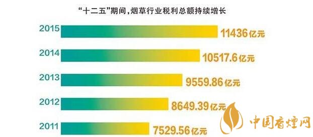 就“十二五”期間,煙草行業(yè)稅利占國家財(cái)政收入的比重保持平穩(wěn),始終保持在7.2%~7.5%的較高水平。五年上繳財(cái)政總額4.13萬億元,年均增長17.5%,比同期全國財(cái)政收入年均增長率高4.7個(gè)百分點(diǎn)。2015年,在經(jīng)濟(jì)下行壓力持續(xù)加大的情況下,煙草行業(yè)為國家財(cái)政增收做出了更大貢獻(xiàn),充分體現(xiàn)了國家財(cái)政收入“蓄水池”的功能。