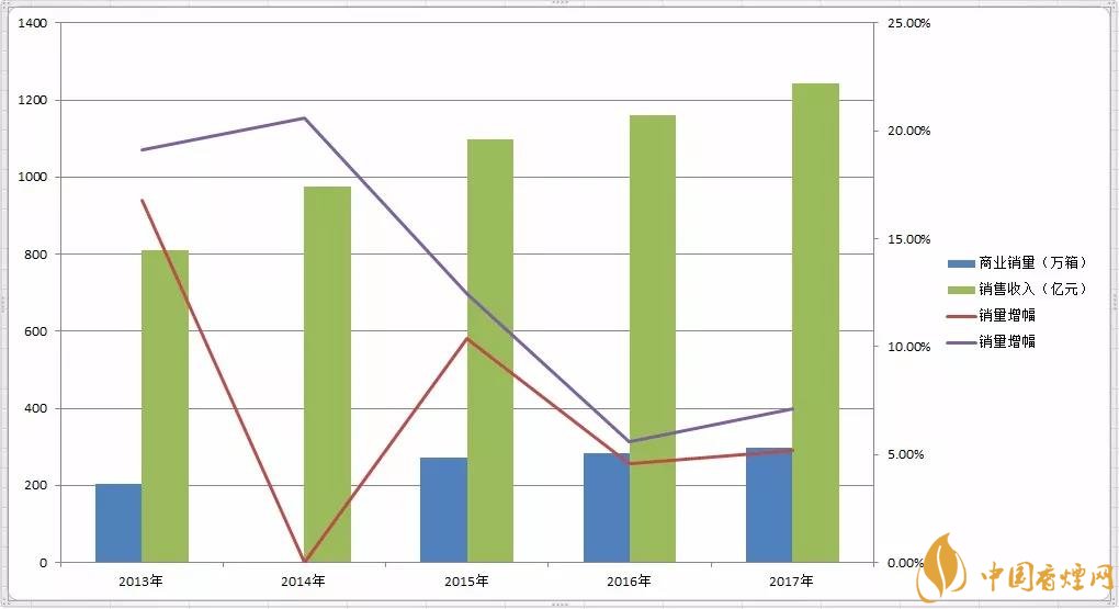利群2013年-2017年商業(yè)銷量、銷售收入走勢