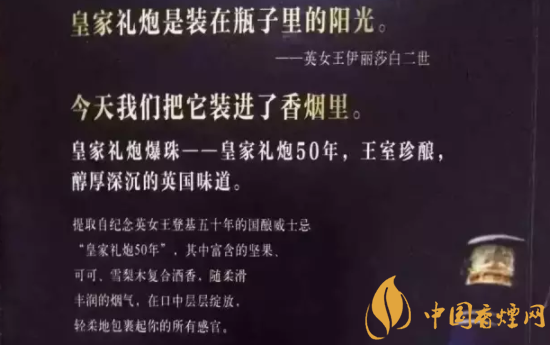 10支皇家禮炮50年爆珠:皇家禮炮50年爆珠提取自紀(jì)念英國(guó)女王登基50年的國(guó)釀威士忌,其中富含堅(jiān)果、可可、雪梨木復(fù)合的酒香,隨著柔滑豐潤(rùn)的煙氣,在口中層層綻放,輕柔的包裹消費(fèi)者的所有感官。