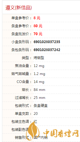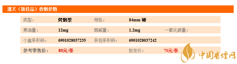遵義(新佳品)香煙為遵義品牌旗下的一款香煙。佳品“遵義”是遵義集團(tuán)新開(kāi)發(fā)的遵義系列產(chǎn)品之一。該產(chǎn)品選用國(guó)內(nèi)外不同類型,不同地區(qū),不同年限的優(yōu)質(zhì)煙葉原料,借助先進(jìn)的理化分析手段和致香物質(zhì)研究成果,經(jīng)過(guò)多次精心試制開(kāi)發(fā)而成。 該產(chǎn)品香氣清雅飄逸,豐滿諧調(diào),余味純凈。給人以優(yōu)美舒適的感覺(jué)。