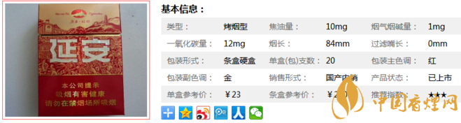 延安紅韻是款Ve爆珠香煙,味道偏淡,煙長(zhǎng)84mm,焦油量10mg,煙堿量1mg,一氧化碳量12mg,吸味整體很清淡,入喉很綿柔,留在齒間的余香很贊。