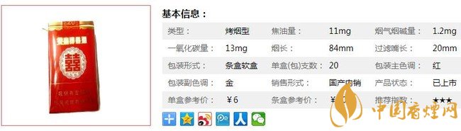 這款軟皮的紅雙喜有點大前門的香味,算是廣東知名度最高的一款煙。味道特別正,勁道適中,香氣不錯,味道還可以,價格平民。口味給贊,值得推薦的一款低價好煙。經(jīng)香煙網(wǎng)小編市場調(diào)查雙喜軟售價為6元/包。