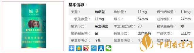 嬌子綠時代陽光煙支長84mm,過濾嘴長24mm,降焦以后,味道有些許差別,相較于之前的濃郁,現在的口感更淡一些。原較純的煙味,變成完全無味且嗆喉,口感濃烈一點的煙民,一般不能接受。下面我們一起來看嬌子綠時代陽光的參數信息:焦油量:11mg. 煙堿量:1.1mg. 一氧化碳量:11mg.