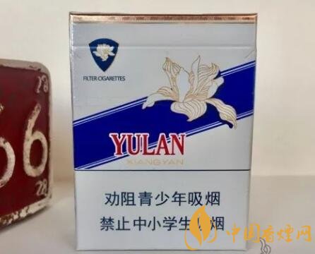 正面來看,頂部可以看到一條金色的邊框,下方是一條鐳射線條,在左上角可看到藍(lán)色為底的類似鉆石logo的圖案,上面有一朵白色的玉蘭花,圖案下方寫著“過濾嘴香煙”,中間是藍(lán)色為底的斜條長方形樣式,上方也是一朵白色玉蘭花和“玉蘭香煙”四個字,這算是很經(jīng)典的玉蘭香煙logo圖案了,最下方是警示標(biāo)語。背面跟正面差不多,整體包裝富有很濃郁的復(fù)古海報的風(fēng)格。
