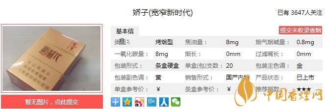 一個符號足以形容這款新時代,過濾嘴采用自主研發(fā)的V型濾棒,煙氣沿V型端面輕輕流入口腔,洋溢明快,適口順喉;煙香綿潤細致,淡而有味。但是這款嬌子寬窄新時代價格不詳。