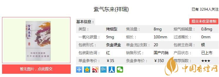 紫氣東來祥瑞煙支長100mm,過濾嘴長35mm,定位在細(xì)支煙品類。通過采用低溫保香,多級復(fù)配等特色工藝,使產(chǎn)品煙草本香更加突出,抽吸的均勻性更加穩(wěn)定,使消費者在享受煙草香氣的同時,又能體味自然舒適的感覺。下面我們一起來看紫氣東來祥瑞的參數(shù)信息:焦油量:8mg 煙堿量:0.8mg 一氧化碳量:9mg