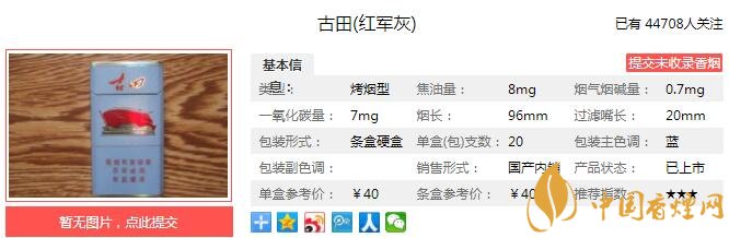 以上便是由香煙網(wǎng)小編為大家介紹的關(guān)于古田紅軍灰多少錢一包 古田紅軍灰口感如何的相關(guān)信息,想要了解更多有關(guān)內(nèi)容請點擊:泰山秀系列香煙有幾種 六款泰山秀系列香煙價格介紹