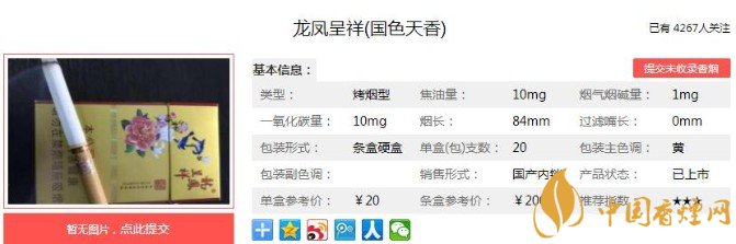 以上便是香煙網(wǎng)小編為大家介紹的關(guān)于龍鳳呈祥國(guó)色天香價(jià)格及口感評(píng)析,一款繼承川渝風(fēng)味的香煙!的相關(guān)信息,看完之后大家是不是對(duì)于龍鳳呈祥(國(guó)色天香)這款香煙的相關(guān)信息更加了解呢。大家還想查詢更多的相關(guān)內(nèi)容歡迎點(diǎn)擊:龍鳳呈祥經(jīng)典的7款香煙 第三款是國(guó)民公認(rèn)的喜煙代表