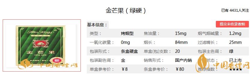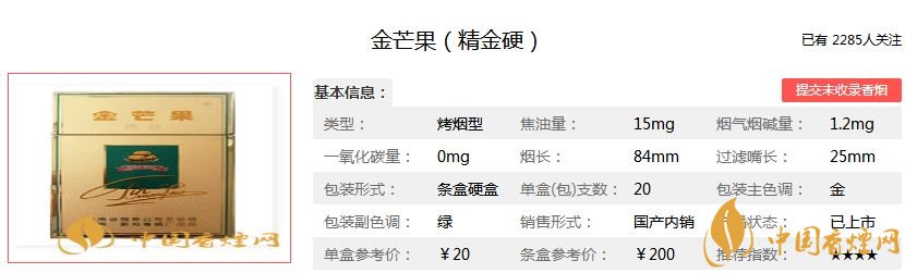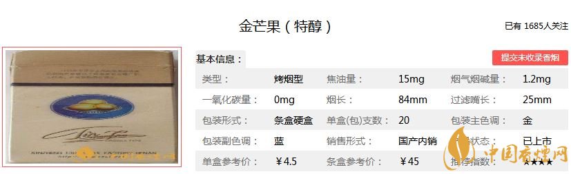 以上就是香煙網為大家整理介紹的金芒果香煙的品牌介紹以及金芒果香煙價格表圖一覽,希望為大家提供幫助。想查詢更多香煙信息,請關注香煙網!
