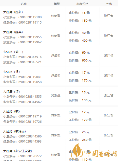 香煙網(wǎng)為您提供2020大紅鷹香煙價(jià)格表和圖片,大紅鷹這個(gè)品牌在浙江是一個(gè)風(fēng)光無限的品牌,這款香煙在老煙民的眼里都是老牌了,那么,您知道2020大紅鷹香煙價(jià)格嗎?趕緊來香煙網(wǎng)看看吧!