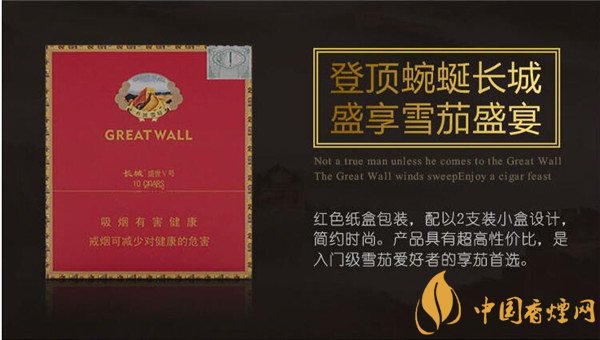 長城雪茄煙盛世5號(hào)包裝非常的亮眼,主打色為中國紅和傳統(tǒng)的帝王黃色相結(jié)合,整體看上去非常的喜慶,口味是最經(jīng)典的雪茄本香,這款長城雪茄煙在裝配上進(jìn)行了大改革。長城雪茄煙(盛世5號(hào))多少錢,接下來香煙網(wǎng)小編將為大家介紹長城雪茄煙價(jià)格表和圖片。