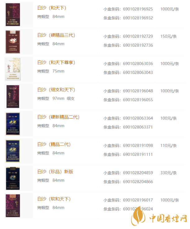 以上就是香煙網(wǎng)小編為您提供的關(guān)于白沙香煙價格表圖大全的相關(guān)信息,更多詳情資訊請點(diǎn)擊香煙網(wǎng)了解有關(guān)信息