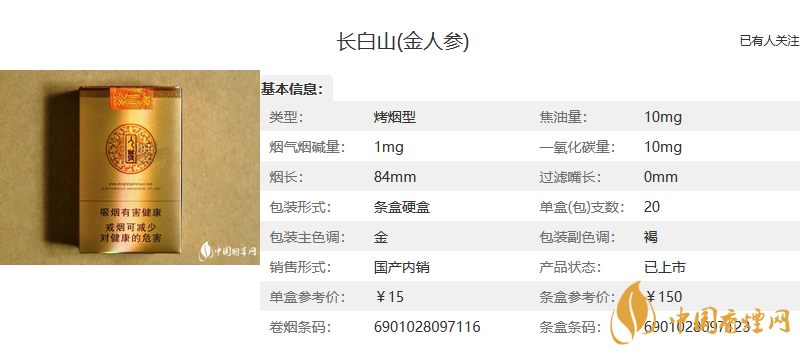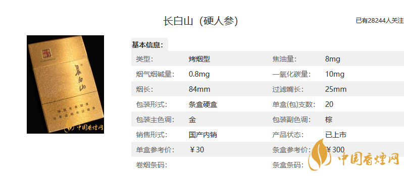 【長白山人參香煙價格表和圖片一覽 長白山人參香煙多少錢一包】相關(guān)推薦文章:
