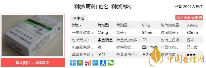 利群薄荷俗名利群清風,這煙的包裝給人一種清新的感覺,煙香淡雅清新,涼意絲絲,比較舒適。就像這款產(chǎn)品宣傳語所說的一樣:“如雪山與清流,如云霧與樹林,淡雅的綠傳遞清新,薄荷的涼意,讓吸味充滿愉悅清潤”。經(jīng)香煙網(wǎng)小編市場調(diào)查利群薄荷售價為21元/包。