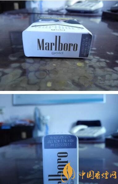 煙盒底端沒有數(shù)字和字母組合的鋼印號碼,但是有PF開頭的噴碼。免稅版本的煙盒底端,則是印制有LA的鋼印號碼。