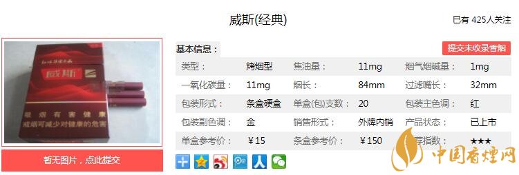以上便是由香煙網小編為大家介紹的關于威斯經典多少錢一包 威斯經典口感及參數介紹的相關信息,想要了解更多有關內容請點擊:威斯小熊貓價格及參數 威斯小熊貓獨家口感分析