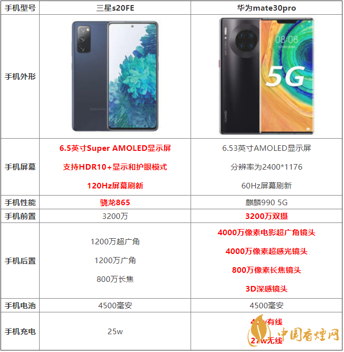 以上就是香煙網(wǎng)小編為大家介紹的華為mate30pro和三星s20FE哪個手機好的相關(guān)內(nèi)容了,希望對大家在選擇時有所幫助。了解更多實用手機相關(guān)咨詢,請關(guān)注香煙網(wǎng)。