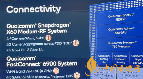 驍龍888移動平臺集成基于5nm工藝的高通第三代5G調(diào)制解調(diào)器及射頻系統(tǒng),能夠支持5G FDD-TDD 6GHz以下頻段的載波聚合、支持5G TDD-TDD 6GHz以下頻段的載波聚合,同時,引入毫米波-6GHz以下聚合,理論速率高達(dá)7.5 Gbps的下載和3Gbps的上傳速率。當(dāng)然,對消費者最利好的消息是,更小制程且集成在SoC當(dāng)中的基帶,將會大幅削減5G鏈接的功耗,提供更優(yōu)秀的設(shè)備續(xù)航。