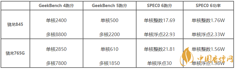 驍龍845:LPDDR4x@1866MHz,16位四通道;驍龍765G:LPDDR4X@2133MHz,16位雙通道