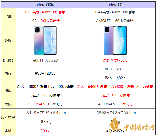 vivoy52s和vivos7手機(jī)哪個(gè)更好?vivoy52s和vivos7對(duì)比,有哪些區(qū)別和配置差距,哪款手機(jī)更值得入手?接下來香煙網(wǎng)小編就為大家?guī)砹藇ivoy52s和s7全面參數(shù)配置對(duì)比,一起看看哪款更值得入手性價(jià)比更高吧!