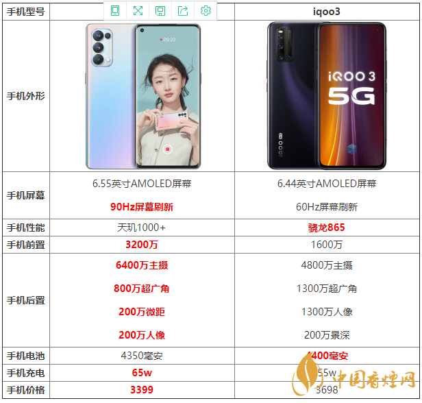 這兩款手機(jī)的側(cè)重點(diǎn)不同,對手機(jī)的拍照、外形有需求的可以選擇opporeno5pro,對手機(jī)游戲性能、散熱性能、續(xù)航能力有需求的可以選擇iqoo3。