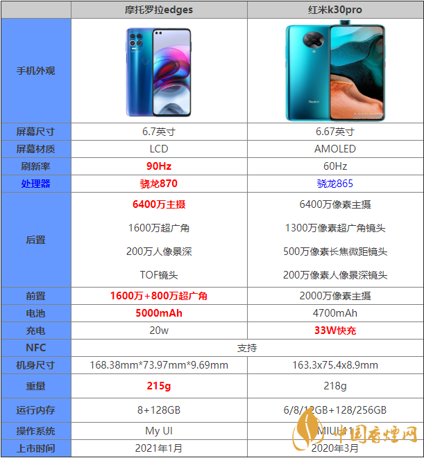 摩托羅拉edges和紅米k30pro兩款手機的價格是非常相近的,當小伙伴們同時碰到這兩款手機的時候我們需要怎么選擇呢?那么摩托羅拉edges和紅米k30pro哪款手機更值得入手?下面香煙網(wǎng)小編將對摩托羅拉edges和紅米k30pro參數(shù)對比進行介紹,一起來看看吧!