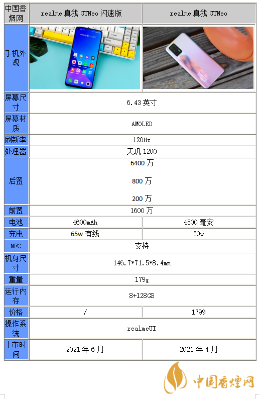 以上就是小編收集到的真我GTneo閃速版和真我GTneo有什么區(qū)別-參數(shù)對比分析的相關(guān)內(nèi)容,以上內(nèi)容均來源于網(wǎng)絡(luò),僅供參考,一切以實(shí)際為準(zhǔn),更多最新數(shù)碼資訊請關(guān)注香煙網(wǎng)。