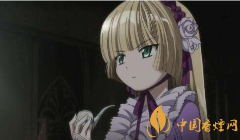 維多利加擁有著絲帶般的金色長發(fā),如天鵝絨頭巾般披散在身上,自然垂落在穿著小巧皮鞋的腳邊,瞳孔閃耀著近乎透明的翡翠綠,側臉有著陶制品特有的冰冷。身穿裝飾著絲帶和高級蕾絲花邊的哥特風格服裝,嘴里經(jīng)常叼著煙斗。