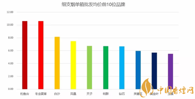 4、如圖所示2018細(xì)支煙排行榜(單項(xiàng)批發(fā)價(jià))圖:中國(guó)細(xì)煙排行單項(xiàng)批發(fā)價(jià)前10品牌榜:在第一季度中國(guó)細(xì)煙排行中1-3月細(xì)支煙單項(xiàng)批發(fā)價(jià)前10品牌一目了然。第一名釣魚臺(tái)、第二名冬蟲夏草、第三名白沙、第四名鳳凰、第五名天子、第六名利群、第七名鉆石、第八名芙蓉王、第九名:云煙黃金葉、第十名玉溪