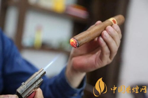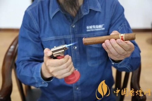 單手45°持茄,火焰正對(duì)雪茄端面,盡量靠近但不觸碰,轉(zhuǎn)動(dòng)雪茄,到端部變黑即可停止,過分點(diǎn)燃會(huì)導(dǎo)致雪茄苦澀。