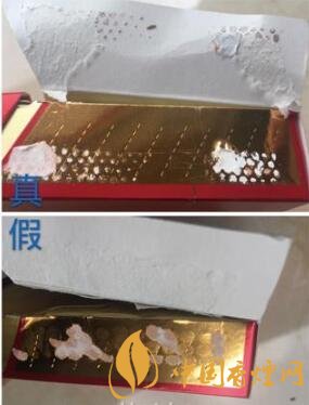 真品卷煙側(cè)邊有一條與側(cè)邊平行的機(jī)器壓痕;假煙采用手工燙封,沒有機(jī)器留下的壓痕。