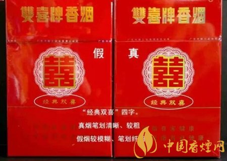 2、看小盒包裝的商標(biāo)印刷工藝:尤其是“經(jīng)典雙喜”這4個字,真煙筆劃清晰,字體要粗一些;而假煙的筆劃模糊,字體纖細(xì)。