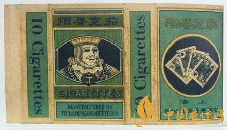 整幅煙標(biāo)由湖綠顏色擔(dān)當(dāng)主色調(diào),配以藏青色和金色,輔以撲克牌不同花色圖案形成的彩色,洋味很濃,幾可亂真是舶來品。10支裝的卷煙規(guī)格,在當(dāng)時(shí)是頗為流行且較普遍的一種卷煙規(guī)格。