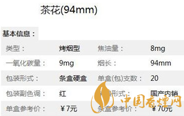 在了解了細(xì)支白盒茶花煙多少錢(qián)一包 之后,為了大家能更詳見(jiàn)的了解此煙,小編特意將茶花(94mm)香煙的核心參數(shù)進(jìn)行了整理,以便于對(duì)它進(jìn)行更深入的了解。